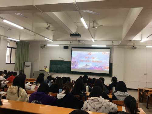 为学习贯彻习近平总书记在学校思想政治理论课教师座谈会上的重要讲话精神,全面落实中共中央办公厅、国务院办公厅《关于深化新时代学校思想政治理论课改革创新的若干意见》,用好“公开课”这一促进教师之间学习交流和提高教学水平的有效手段,提高课堂教学质量,12月3日,马克思主义学院在白云校区开展公开课教学活动。马克思主义学院党政班子、近三年引进教师和其他没课的老师参加活动,广州康大职业技术学院党委书记卓光琳率思政部全体教师前来观摩公开课。