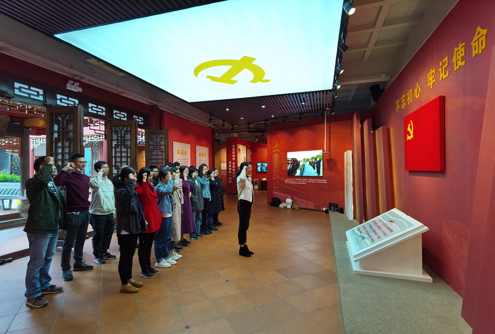 在阅江楼崧台书院“初心堂”新时代讲习所,学院党委书记苏敏带领全体党员重温入党誓词,在思想上经受再一次“洗礼”,进一步坚定理想信念,牢记使命宗旨,不忘初心、永葆本色。