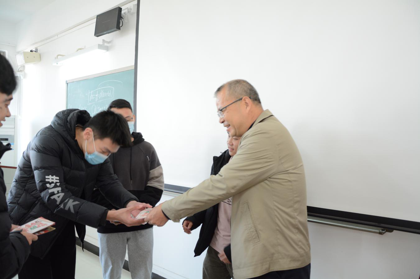 自动化学院师生一行走进考研自习室、学生宿舍,仔细询问备战考研学生的学习、生活等情况,并为每位备考学生送上学院用心用情书写的《致自动化最美考研人的一封家书》和考研用具。张旭日表达了学院了对全体学生的关心和鼓励。他表示,考研是一个人成长成才的重要途径,同学们只要明确目标、坚定信心、稳扎稳打、以积极向上的心态高效率学习,就一定能够实现既定目标。他建议同学们注意劳逸结合,学会自我调节压力,适度放松,尤其是在疫情防控期间注意加强自我保护。在考研前夕,大家更要互帮互助、携手共进。