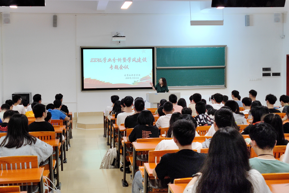 为进一步发扬好学精神,端正学习态度,3月14日晚,计算机科学学院在河源校区唯实楼101召开了2020级新生学业分析暨学风建设促进会,全体新生班委、年级助理和年级辅导员共170余人参加会议。