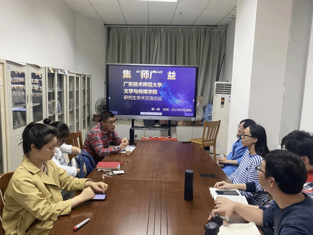 为了培养研究生的科研意识和创新能力,提高研究生参与科学研究的积极性和主动性,营造良好的学术氛围,3月26日,文学与传媒学院第一期《集“师广”益》研究生学术论坛在白云校区第一教学楼423B会议室举行。文学与传媒学院副院长佘爱春、林琳和2020级新闻传播学文学与传媒方向研究生参加了此次论坛。