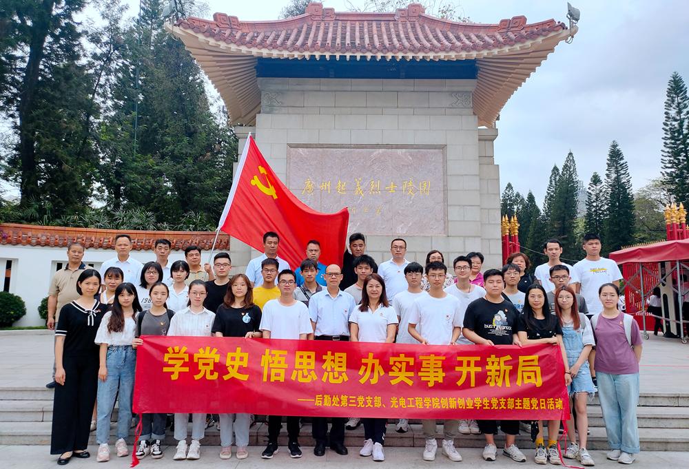 为深入开展党史学习教育,进一步激发基层党组织活力,引导党员师生学史明理、学史增信、学史崇德、学史力行,3月31日,后勤处第三党支部和光电工程学院创新创业学生党支部一行48人,赴广州起义烈士陵园开展“学党史 悟思想 办实事 开新局”主题党日活动。