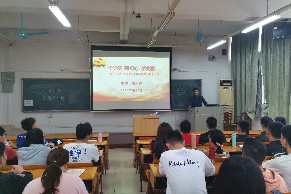 自学校召开党史学习教育动员大会以来,电子与信息学院全面部署、立即行动,坚持开展党史“每周一讲”活动,迅速掀起一股党史学习的浪潮,引导师生党员学党史,悟思想,强信念,知史爱党、知史爱国,把学习党史焕发出的热情投入到工作学习中,以党史学习教育成效迎接建党100周年。