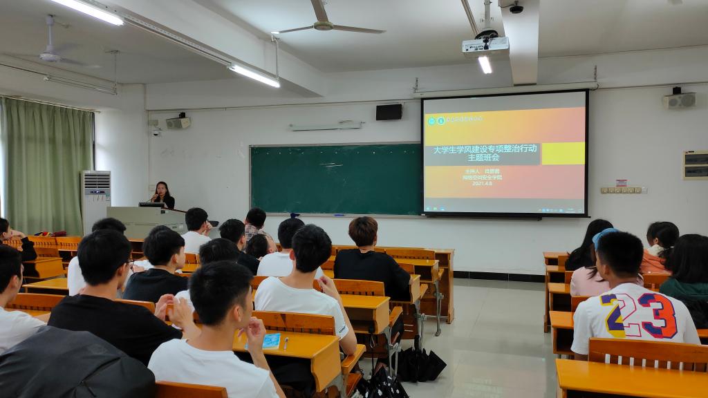 为进一步加强学风建设,营造良好育人环境,促进优良教风、学风和班风养成,4月8日,网络空间安全学院在三教507召开专项主题班会,深入落实学校关于学风建设专项整治行动部署要求。学院政工干部及全体同学参加了此次活动。