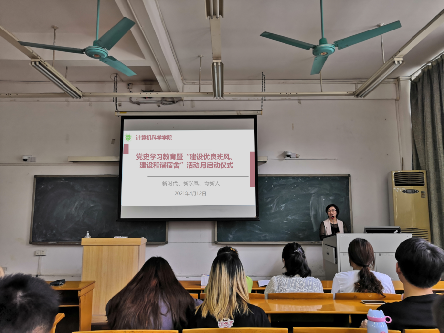 为持续深入开展学风建设工作,营造严谨求实,好学上进的良好学习氛围,4月12日,计算机科学学院在东校区二教203组织召开“建设优良班风、建设和谐宿舍”主题活动月启动仪式。学院政工干部及全体班委参加了活动。
