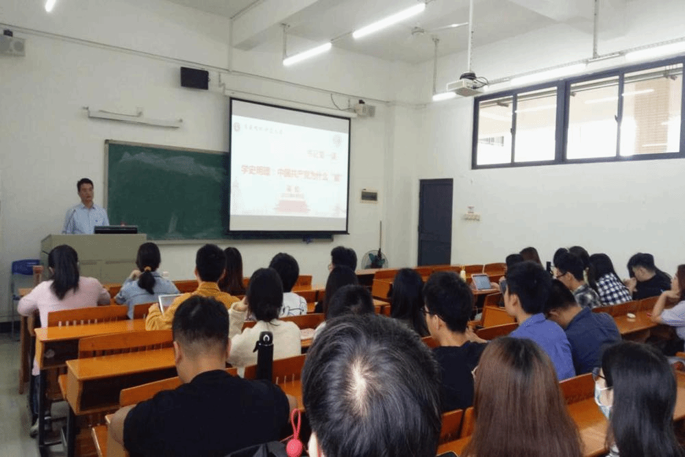 吴松的授课主题为《学史明理:中国共产党为什么“能”》,他从“中国共产党能救国、能兴国、能富国、能强国”的四大方面入手,进而引发同学们对中国共产党为什么“能”这个问题的思考与讨论。在同学们踊跃发言后,吴书记从五个方面总结了中国共产党“能”的原因:第一,先进的思想指导和正确的道路选择;第二,坚持人民至上立场和走群众路线;第三,严密的组织体系和严明的组织纪律;第四,顽强斗争精神和高超斗争艺术。第五,重视自我革命与自身建设。