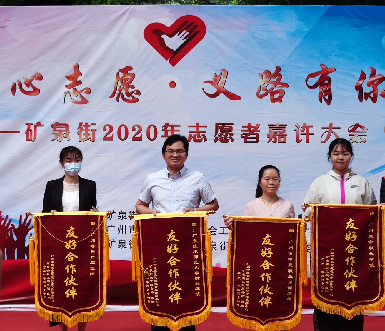 据悉,2020年财经学院组织学生成立“成长驿站志愿服务队”。愿服务队在课余时间帮助矿泉街中处于放学后无人看管状态的儿童进行课业辅导,引导儿童养成良好学习习惯。此次活动财经学院共85名学生加入志愿服务队,其中五位学生受到了矿泉街的表彰。2021年4月17日上午,矿泉街进行了2020年志愿者嘉许大会,财经学院辅导员罗雄代表学院受邀参加并获接受了越秀区矿泉街志愿服务活动“友好合作伙伴”锦旗。