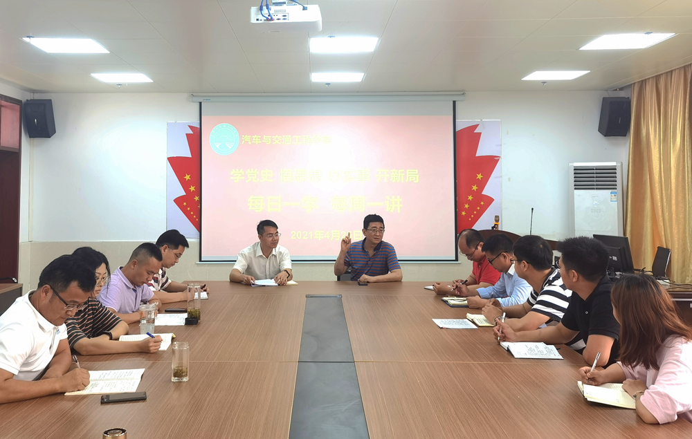 4月25日,汽车与交通工程学院开展“每日一学、每周一讲”学习会,学院领导班子成员,教工党支部、学生党支部书记,党员代表参加了活动。