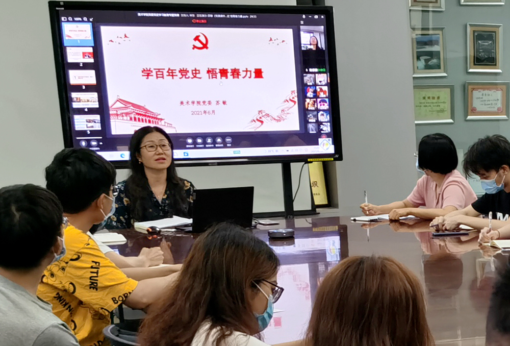 为推进党史学习教育走深走实,6月18日,美术学院党委通过“线上+线下”的形式,由党委书记苏敏为学院全体学生党员、入党积极分子共300余人讲授党史学习教育专题党课。学院党委副书记王明粤、辅导员林东参加会议。