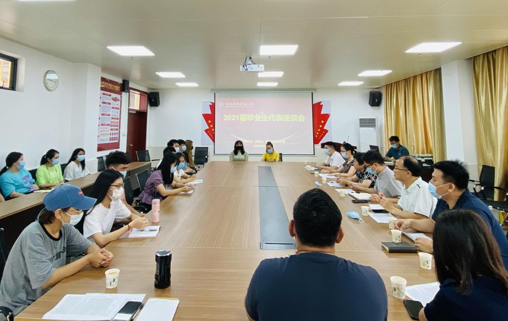 座谈会气氛活跃,毕业生代表踊跃发言,表达了自己对母校四年来教育培养的感激之情,回顾了在校期间的进步与成长,提出了未来的人生规划,并从教学设施、课程安排、学习条件、生活环境、校园管理等方面提出了意见和建议。老师们认真倾听同学们发言,就相关问题与同学们深入进行交流,并为即将开启人生新征程的毕业生们加油鼓劲,希望同学们认真走好人生的每一步,常回母校看看。