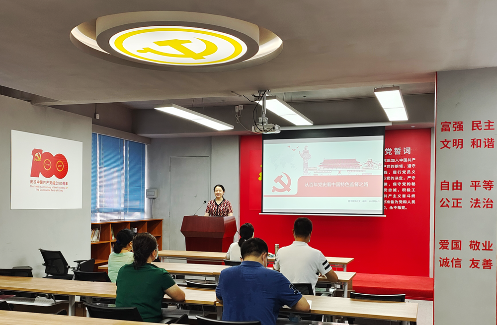 图书馆党员领导干部带头到基层支部通过“线下+线上”“讲授+体会”相结合的方式讲授党史学习教育专题党课。党总支书记谢蔚、馆长白崇分别以《从百年党史看中国特色监督之路》《学史 明理 传承》为题,带领党员干部回顾中国共产党百年反腐历程,感受井冈山时期年轻的共产党人不怕牺牲、矢志不渝的革命精神,从党的光辉历程中汲取前进的力量。