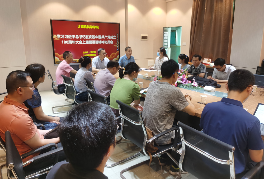 7月8日,计算机科学学院在东校区一教1212会议室召开学习贯彻习近平总书记在庆祝中国共产党成立100周年大会上重要讲话精神动员大会,对学院学习宣传贯彻习近平总书记“七一”重要讲话精神作动员部署。学院党委书记罗纪旋主持会议,学院院长赵慧民、学院党委委员、党支部书记、系主任出席会议。
