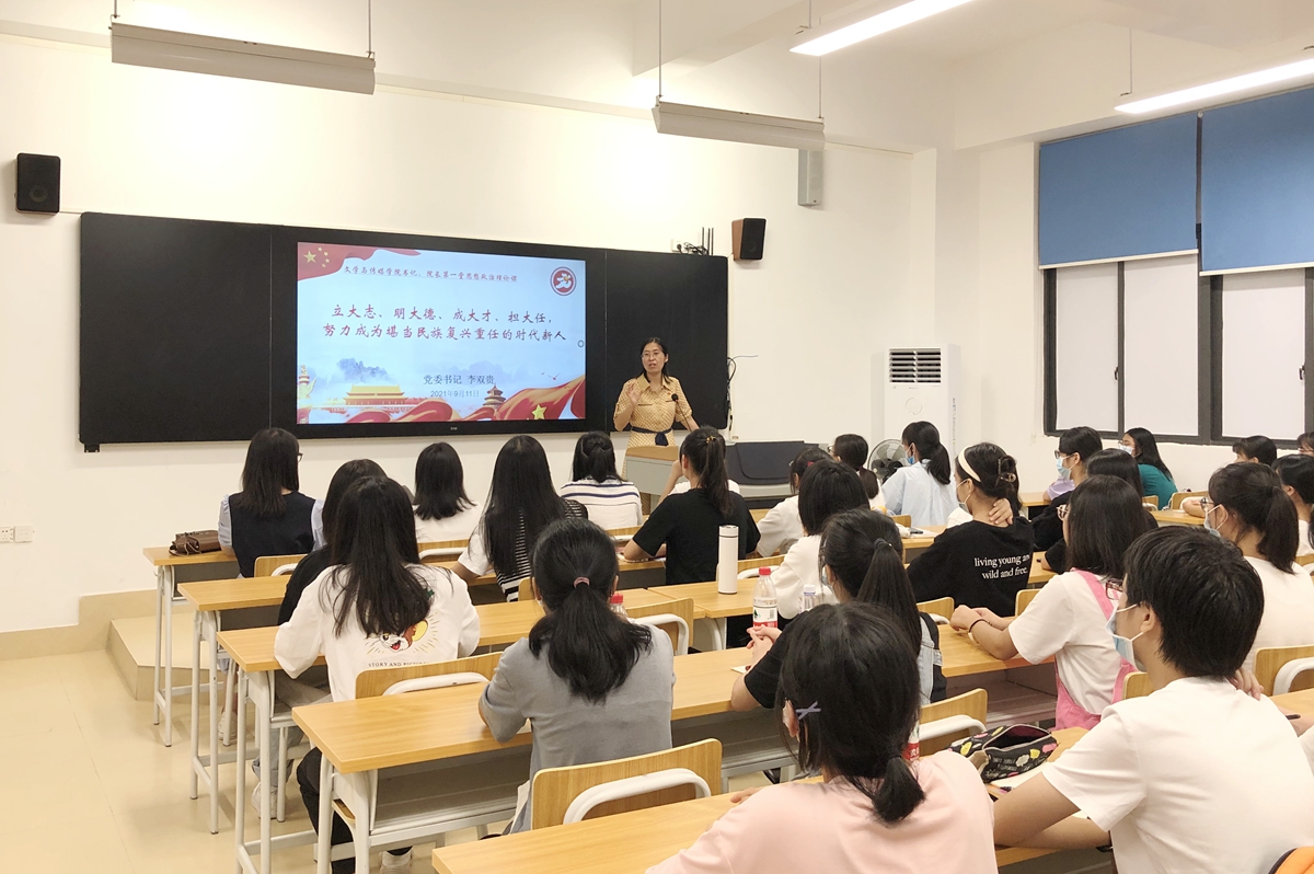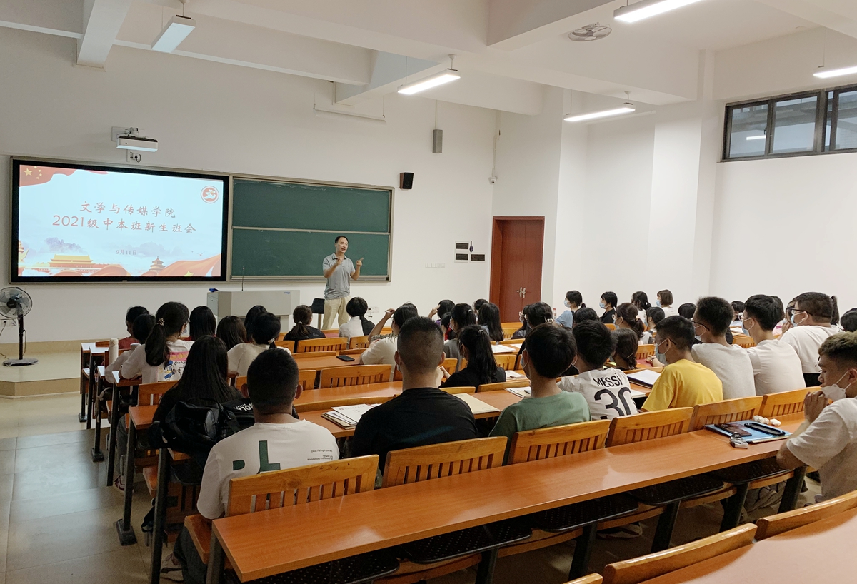 为了让2021级新生更好地学习党的先进思想,更深层次地领会党的理论精神内涵,9月11日,文学与传媒学院党委书记李双贵、院长项裕荣率队在河源校区开展了2021级思政第一课暨新生入学教育主题班会课。