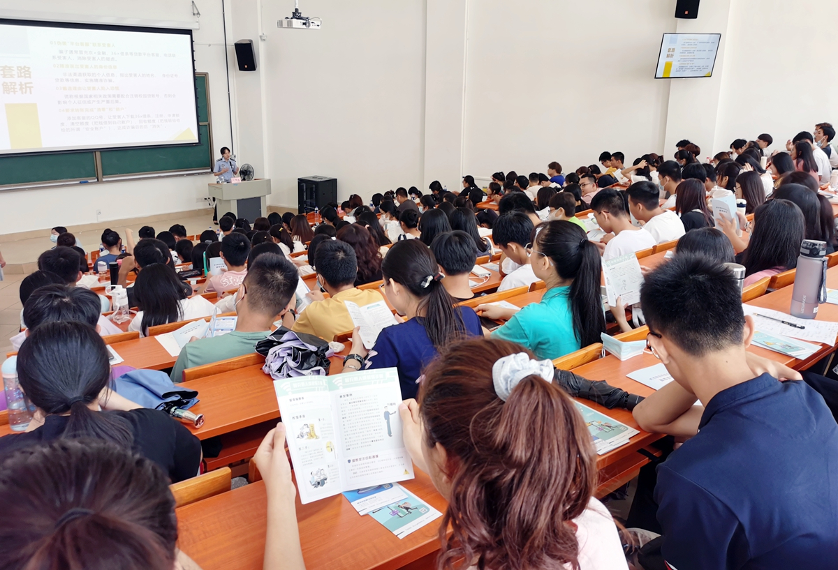 谢警官以典型诈骗案例分享为切入口,深入浅出,系统地讲解了兼职刷单诈骗、网络贷款诈骗、冒充客服诈骗、注销学生贷诈骗、网络赌博诈骗、买卖游戏装备以及冒充公检法、老师或熟人等诈骗案例,并一一指出其应对的措施。同时,谢警官结合自身从警多年的实践经验,告诫同学们须树立正确的消费观念,不贪图小利,理性消费;不轻易泄露个人信息,学会识别电信网络诈骗,增强自身防范意识。