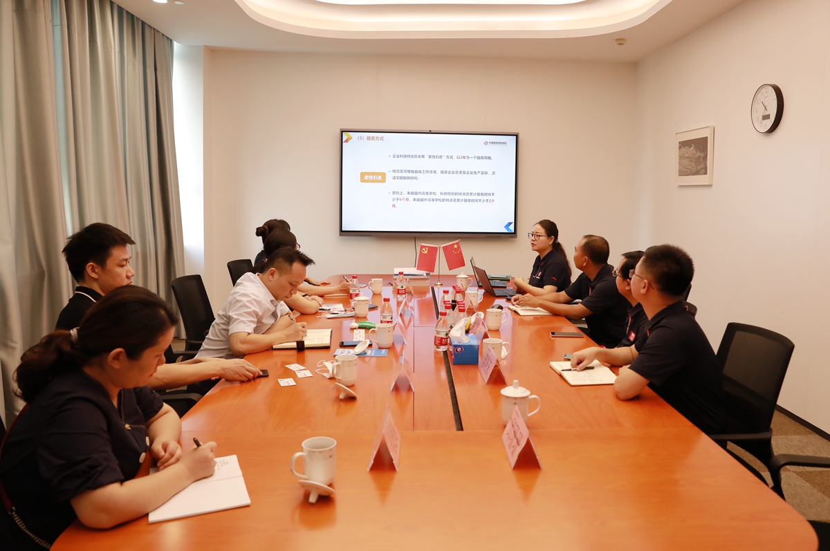 会上,双方就选派“广东省企业科技特派员”工作进行了深入交流,华转中心业务总监全面解读了学校科研工作者参与企业科技特派员工作的重要意义、政策要求和选派流程,并对太阳集团支持科研工作者尤其是青年博士积极参选特派员表示欢迎。最后,双方就科技成果转化、科技管理人才培养等方面洽谈了合作意向。
