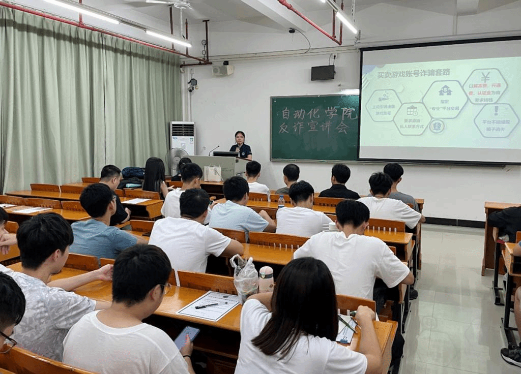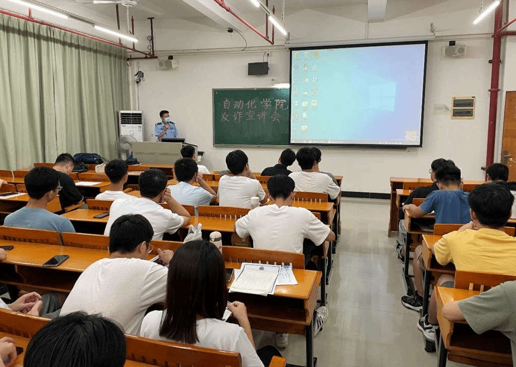 9月24日,为深入开展校园安全宣传教育,提高同学们的防诈骗意识,保障同学们的生命和财产安全,自动化学院在白云校区二教404举办防诈宣讲会,白云公安分局农玲玲警官、柯冠超警官、自动化学院辅导员、研究生新生、全体专插本新生参加了会议。