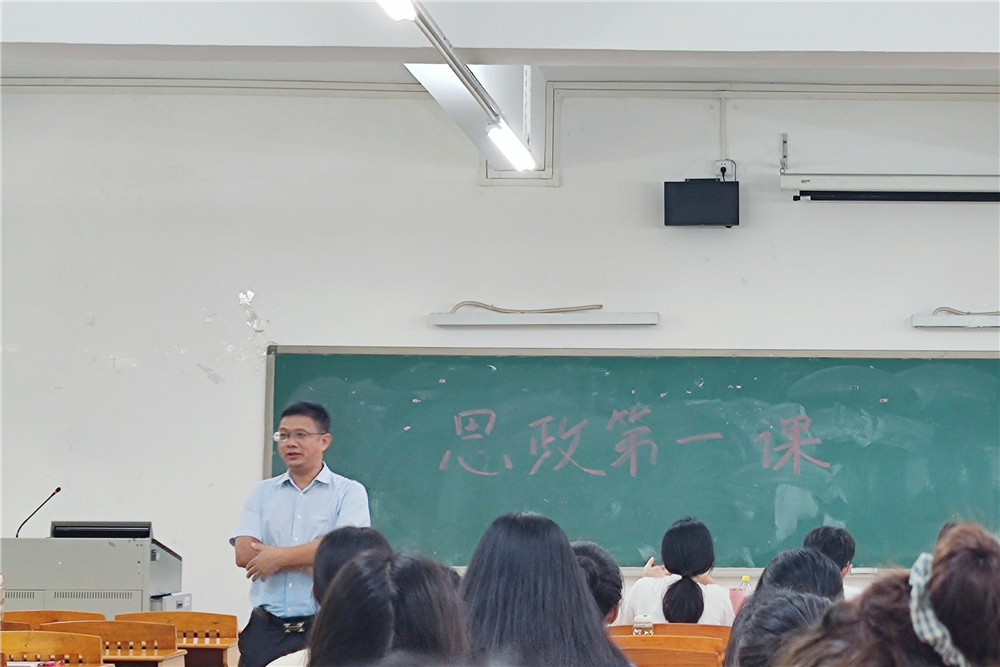 为深入学习贯彻习近平总书记“七一”重要讲话精神,推动党史学习教育扎实开展,根据上级和学校党委关于2021年秋季学期思政第一课部署要求,9月29日,法学与知识产权学院党委书记许建鑫、院长黄俊辉分别在河源校区唯实楼216室和白云校区三教106室为2021级学生、2020级学生干部上2021年秋季学期思政第一课。