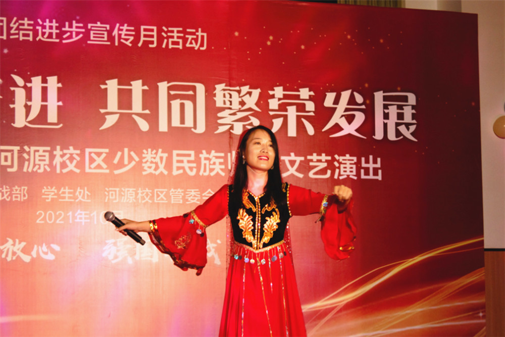 为深入学习贯彻落实习近平总书记在中央民族工作会议上的重要讲话精神,紧紧围绕各民族“共同团结奋斗、共同繁荣发展”的民族工作主题和“铸牢中华民族共同体意识”这一新时代民族工作主线,突出学校民族工作建设的优势。10月15日,由党委统战部、学生处、河源校区管委会、团委共同主办的以“共同团结奋斗、共同繁荣发展”为主题的少数民族师生文艺演出在河源校区圆满落幕。相关部门主要负责人、部分二级学院副书记及广大师生参加了晚会。