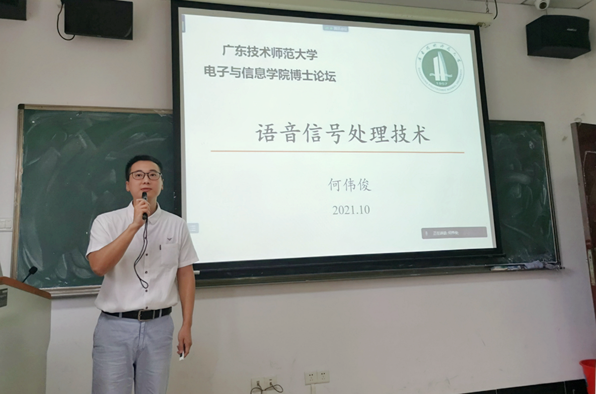 10月14日,电子与信息学院在白云校区一教301举办2021年第九期“博士论坛”。何伟俊博士在论坛上作了题为“语音信号处理技术”的报告。学院青年博士教师和研究生、本科生以线上线下结合的方式参加了此次论坛,论坛由学院副院长李亚主持。