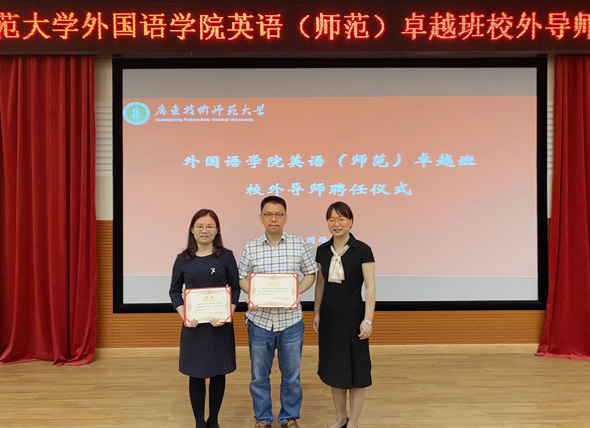 为落实外国语学院导师制人才培养模式,提高英语师范生的教学技能,10月21日,外国语学院英语(师范)卓越班校外导师聘任仪式暨校外专家讲座在白云校区学术报告厅隆重举行。学院院长徐玲,党委副书记王琴琴,校外导师代表广州中学副校长刘敏、广州育才中学教导主任谢全胜,校内导师代表宋伟奇,英语(师范)卓越班本科生以及学科教学(英语)研究生参加会议。会议由王琴琴主持。