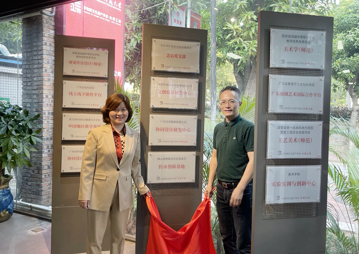 10月26日,美术学院-文创产业学院在非遗传承大师工坊举办校企合作挂牌仪式,与深圳市恒豪文化传播有限公司达成合作,携手共建文创设计研发中心。