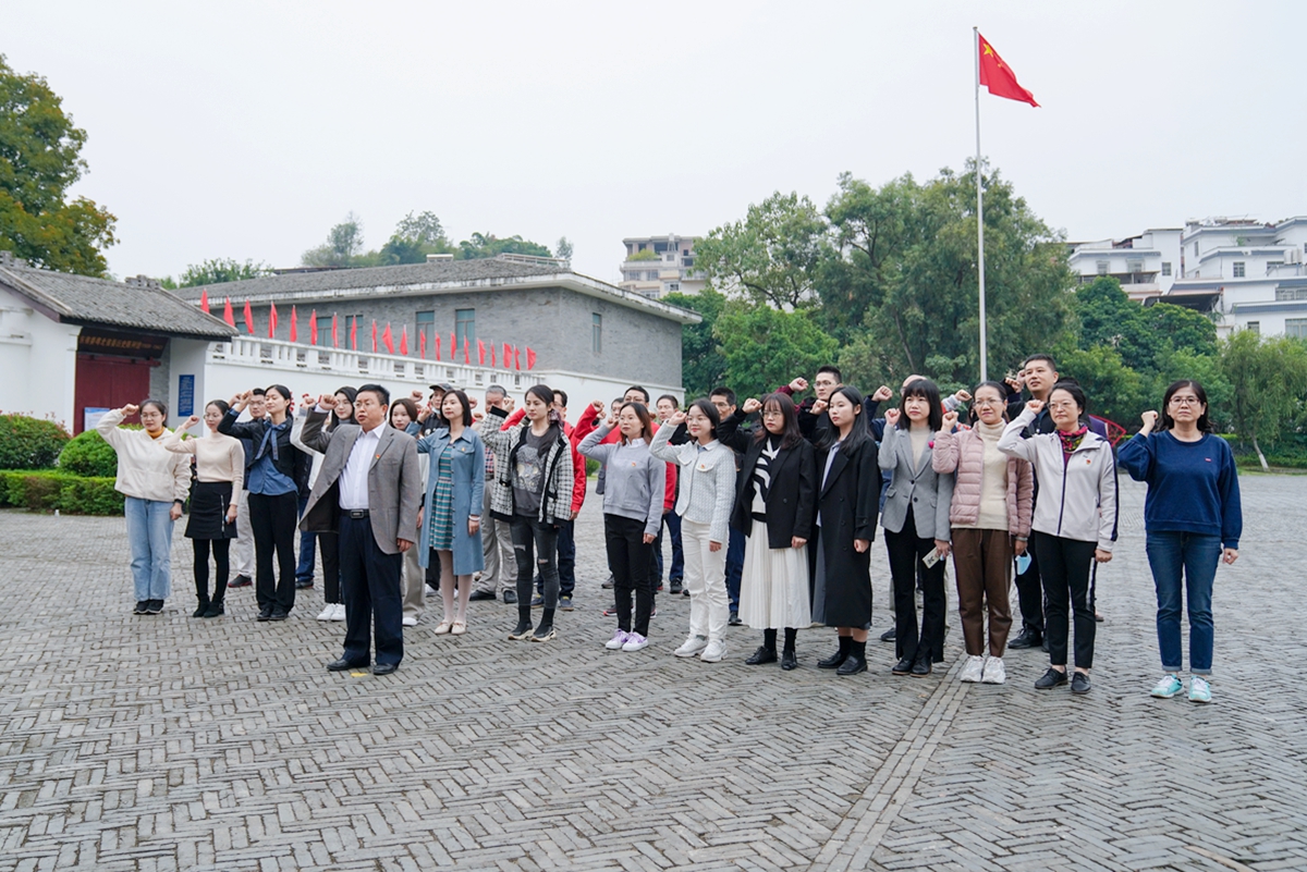 为学习宣传贯彻习近平总书记在庆祝中国共产党成立100周年大会上重要讲话精神,教育引导教师和党员坚定理想信念,进一步上好与实践相结合的“大思政课”,在社会课堂中接受教育、多长才干、多作贡献。10月23—24日,马克思主义学院组织全体教师和党员,围绕“赓续革命薪火、凝聚奋进力量”主题,赴韶关开展党史学习教育研学实践暨主题党日活动。通过红色文化熏陶,进一步厚植红色基因,提升以史铸魂、以史育人的本领,更好地把党史学习教育融入思政课堂中。