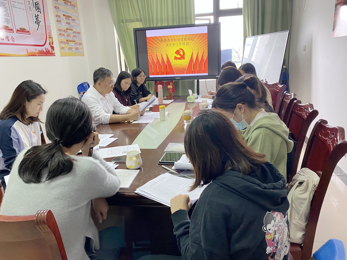 为深入学习贯彻落实《中国共产党普通高等学校基层组织工作条例》,扎实推进基层党组织建设,11月1日,外国语学院党委在白云校区一教221室组织各党支部书记等主要党务工作者开展学习培训。此次学习培训由外国语学院党委书记杨伟光同志主持。