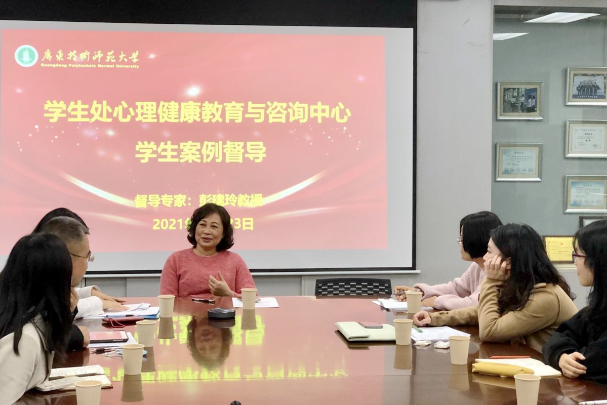为一进步提升专兼职心理健康教育教师的专业能力,加快心理咨询人员成长,更好地为在校大学生提供心理健康服务,11月23日,学生处心理健康教育与咨询中心(以下简称“中心”)开展了心理咨询案例督导会。督导活动邀请广州医科大学附属脑科医院原副院长、精神科副主任医师彭建玲教授担任督导老师,由中心蒙若珺老师报告个案进行督导,中心专兼职心理健康教育教师共同参与团体督导。
