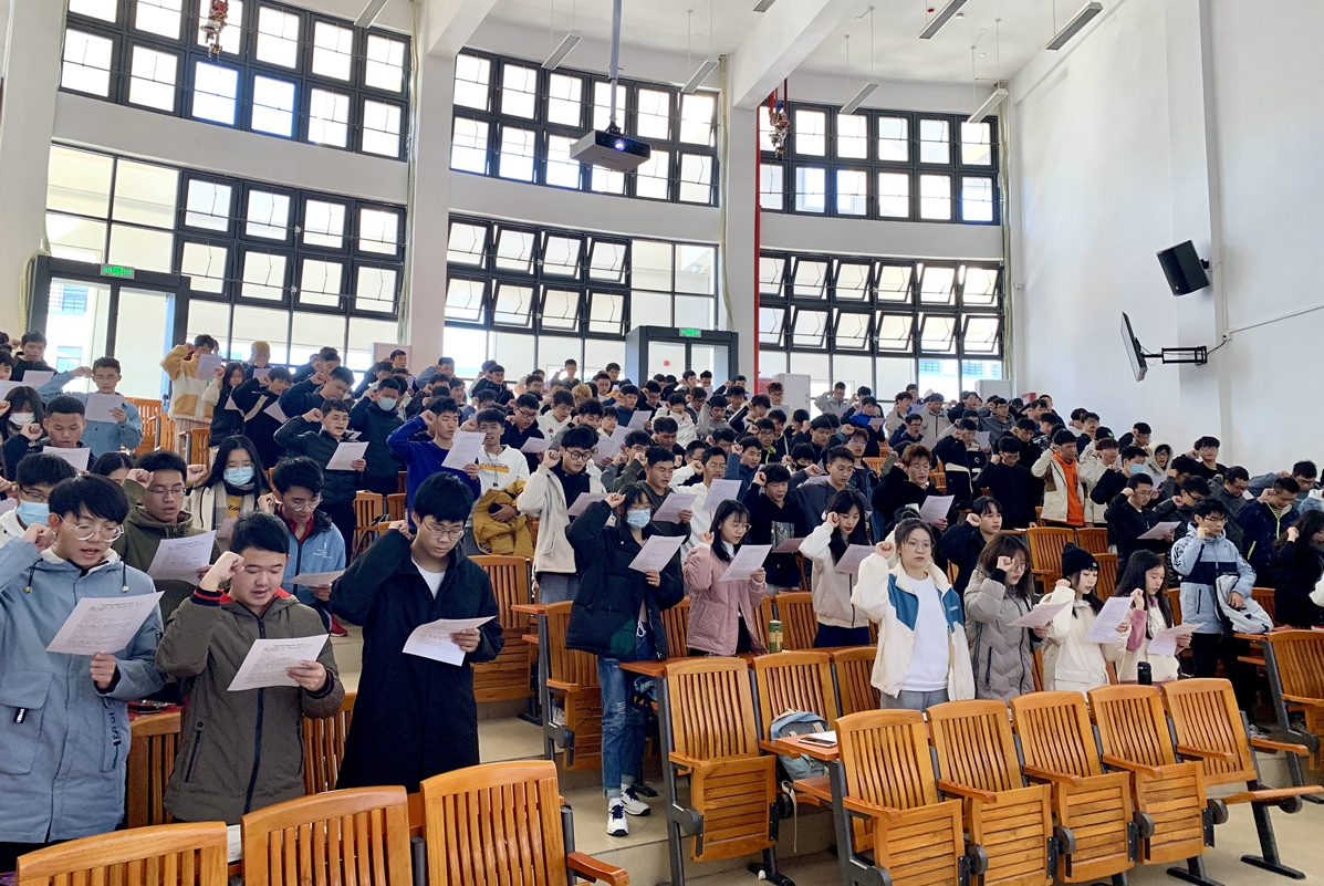 班会上,21级智能科学与技术1班刘锦颢同学和网络工程1班郭丹娜同学分别上台跟大家分享关于“诚信”的哲理故事,让同学们认识到诚信的重要性。刘李爱蕾老师传达了学校和学院有关“诚信考试”的要求,详细宣读《9728太阳集团学生手册》中关于考试违纪处罚的内容,帮助同学们了解考试纪律,并对之前的一些考试违纪案例进行分析,对考场上易忽视的违纪现象提出警示,让同学们对考试违纪行为会导致的后果有更深的认识,引以为戒。然后从“科学复习,积极备考”“端正心态,总结得失”“遵守纪律,杜绝舞弊”三个方面提醒同学们要合理分配复习时间,保持积极备考心态,严格遵守考风考纪。在诚信考试集体宣誓环节,21级智能科学与技术2班石依鑫同学代表上台领誓,全体同学起立宣誓,并签署诚信考试承诺书。
