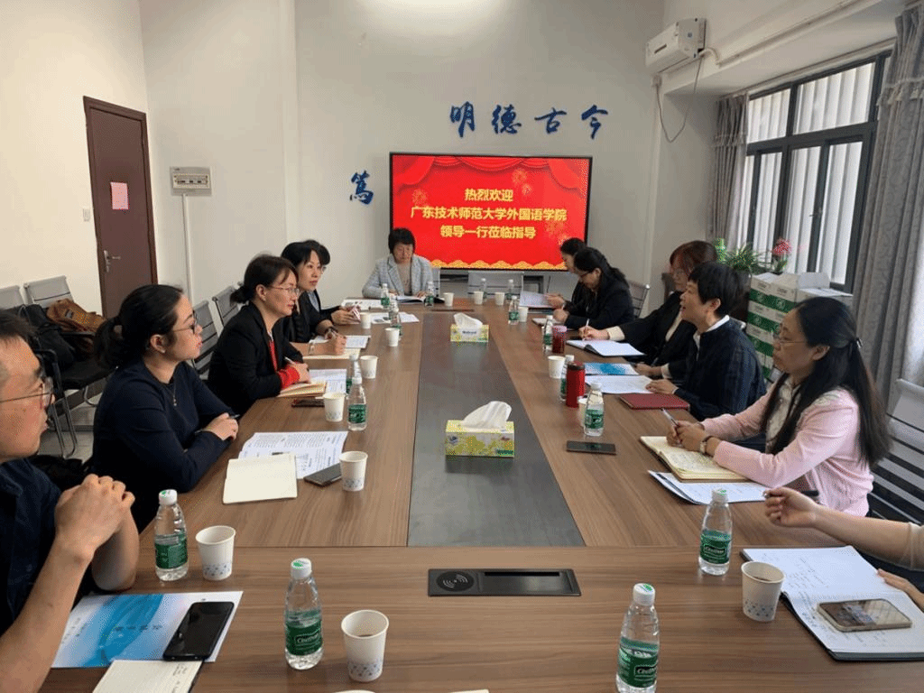 会后,我院代表团队在陈冬纯的陪同下,参观了广东财经大学外国语学院的教师活动室、成果展示栏、文化廊、实训室等。
