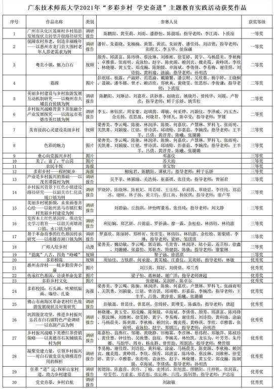 2021年“多彩乡村 学史奋进”主题教育实践活动由广东省人民政府地方志办公室、广东省精神文明建设委员会办公室、广东省教育厅、广东省科学技术厅、广东省农业农村厅、广东省文化和旅游厅、广东省人民政府港澳事务办公室、共青团广东省委员会、广东省学生联合会、南方报业传媒集团联合举办。活动开展以来,学校领导高度重视,由图书馆、团委、组织部、科研处、学生处、研究生院等部门联合宣传组织广大师生积极参与,取得了较好的社会效应。