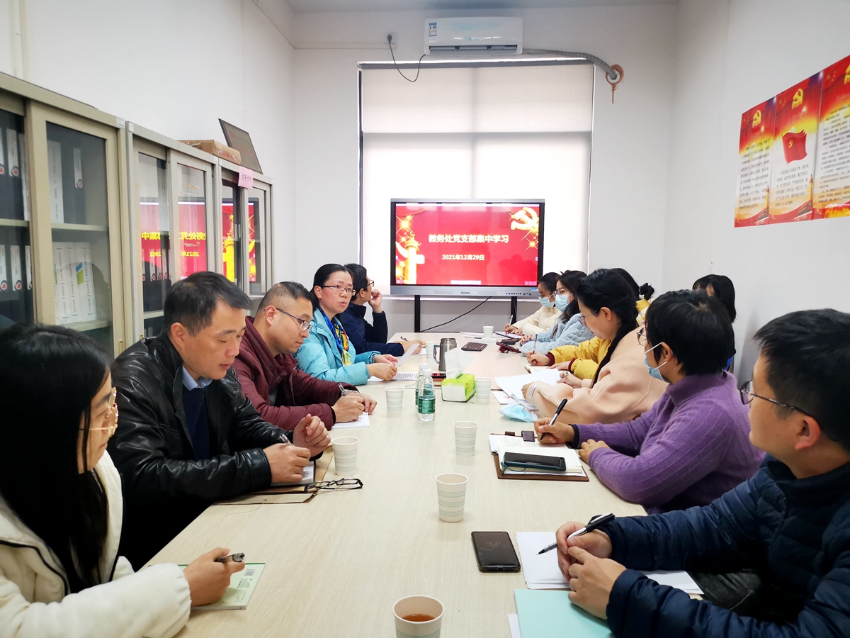 12月29日下午,为进一步推进支部党员开展政治理论学习,教务处党支部在东校区三栋407开展支部集中学习活动,专题学习习近平总书记的重要指示精神和关于教育的重要论述,进一步深入学习党的十九届六中全会精神。会议由教务处副处长、支部副书记吴秀兰主持。