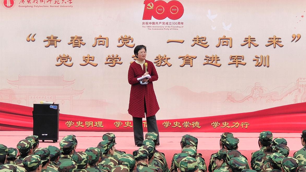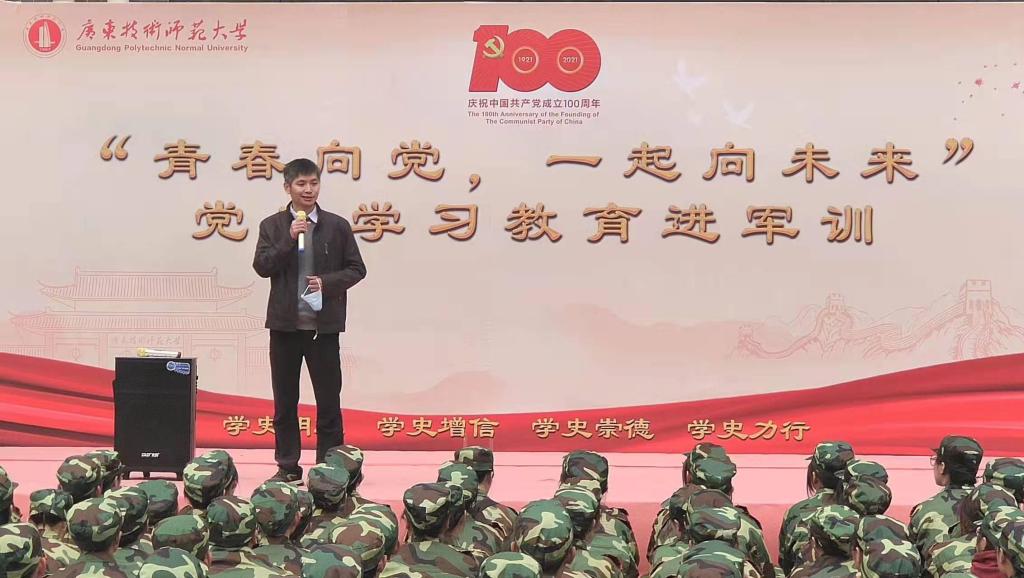 白雪飞以“党史学习进军训”作为切入点,引导学生们赓续红色基因,勇担时代使命;接着以“搬砖”的典故勉励同学们即使身处逆境,也要保持积极乐观的心态,锻炼身体、韬光养晦,无论是学习、生活还是工作,都要学会规范自己的行为,严于律己,宽以待人。白雪飞对参训同学提出殷切期望,希望同学们学会在担当中历练、在尽责中成长,学党史、强信念、跟党走,以“强国有我”的姿态自觉奋进新征程。