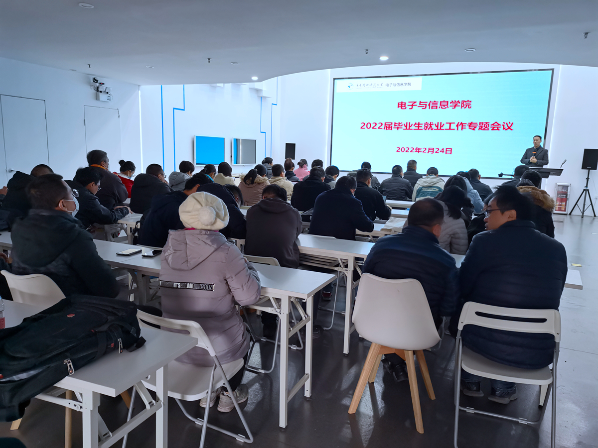 为贯彻落实2022届广东省高校毕业生就业创业视频工作会议精神和学校就业工作会议精神,进一步推动电子与信息学院2022届毕业生就业工作,提高政治站位,动员全员参与,2月24日,学院召开2022届毕业生就业工作专题会议。学院党委领导班子、系主任、辅导员及全体教职工参加会议,会议由学院党委副书记梁茵主持。