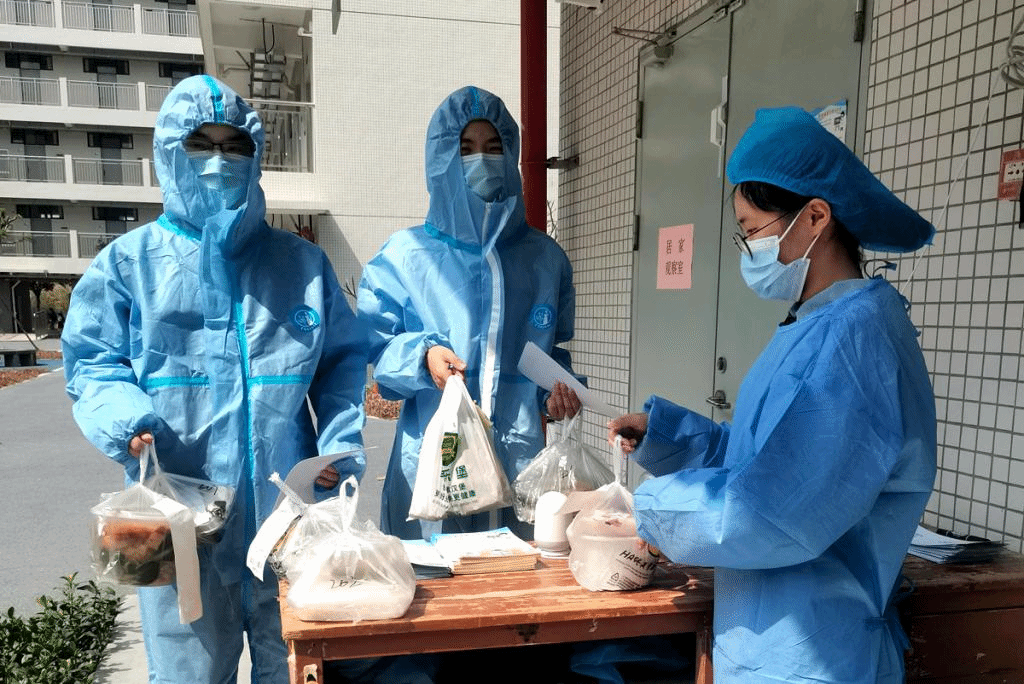 返校后,部分生源地发生疫情,来自该生源地变成“黄码”的学生严格按照要求进行统一隔离,为了使隔离学生能够与学院的教学、生活同步,使他们感受学院的关怀,机电学院专门成立了由师生党员和学生干部组成的疫情防控志愿服务队,为隔离的同学们送餐。同时,志愿者跟隔离的同学们交流,将每日授课内容与他们分享,了解他们的身体状态,记录他们所需的日常生活用品或其他需求,及时进行反馈和处理。尤其是志愿队的曹宇豪、陈振、陈秀琳、冯海俊等同学,以忘我的精神为隔离的同学送上一份温暖,为抗疫尽自己的一份力。