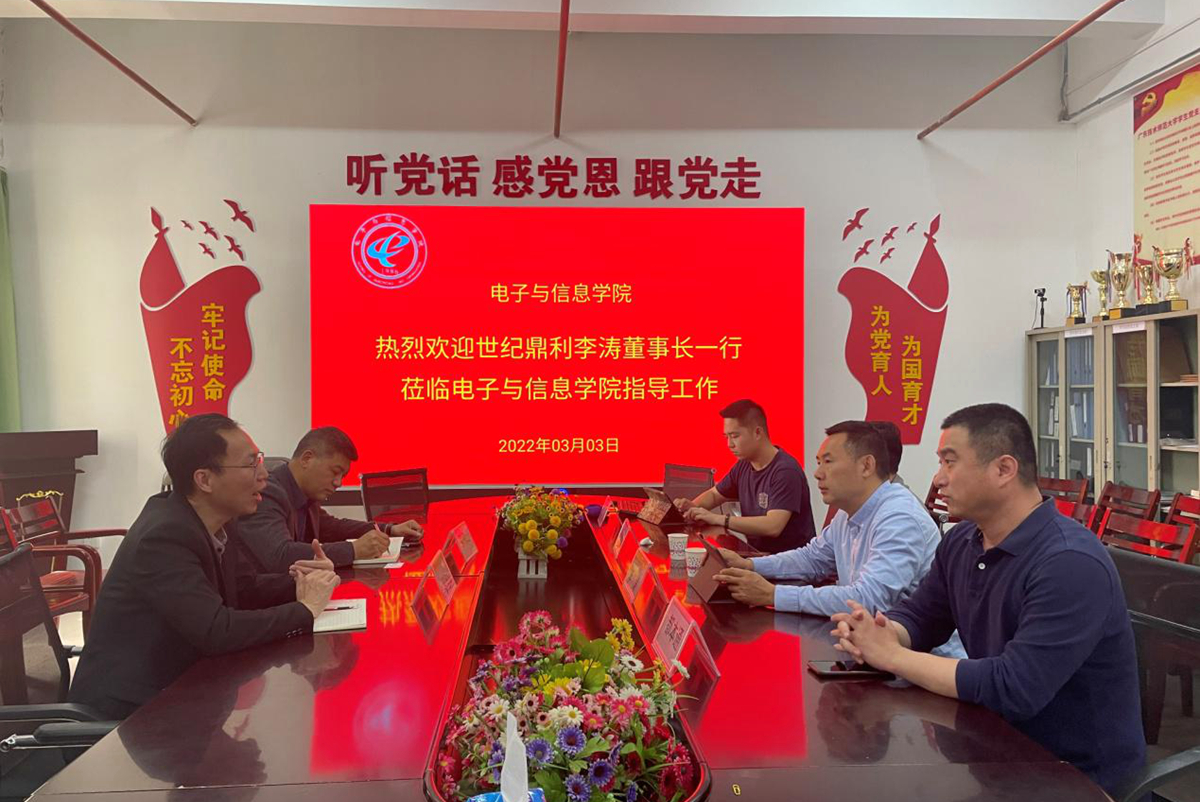 3月3日,珠海世纪鼎利科技股份有限公司董事长李涛、总经理欧阳峻辉等一行四人到访电子与信息学院进行校企合作交流,电子与信息学院党委书记罗旭辉、副院长柳秀山参加了会议。