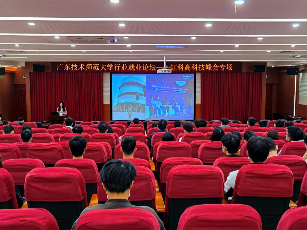 为进一步推动校企联动,精准对接促就业,近日,太阳集团携手广州虹科电子科技有限公司在白云校区三教104和东校区二教203分别举办了本学期第一、第二场行业就业论坛及专场招聘。广州虹科电子科技有限公司总经理、校友陈秋苑一行、招生就业办公室和各学院相关负责人员以及400余名2022届毕业生参加了本次活动。