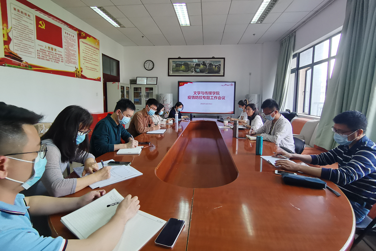 3月15日,文学与传媒学院疫情防控专题工作会议在白云校区一教402会议室召开,学院党政领导班子、党支部书记和全体辅导员参加会议。会议由学院党委书记李双贵主持。