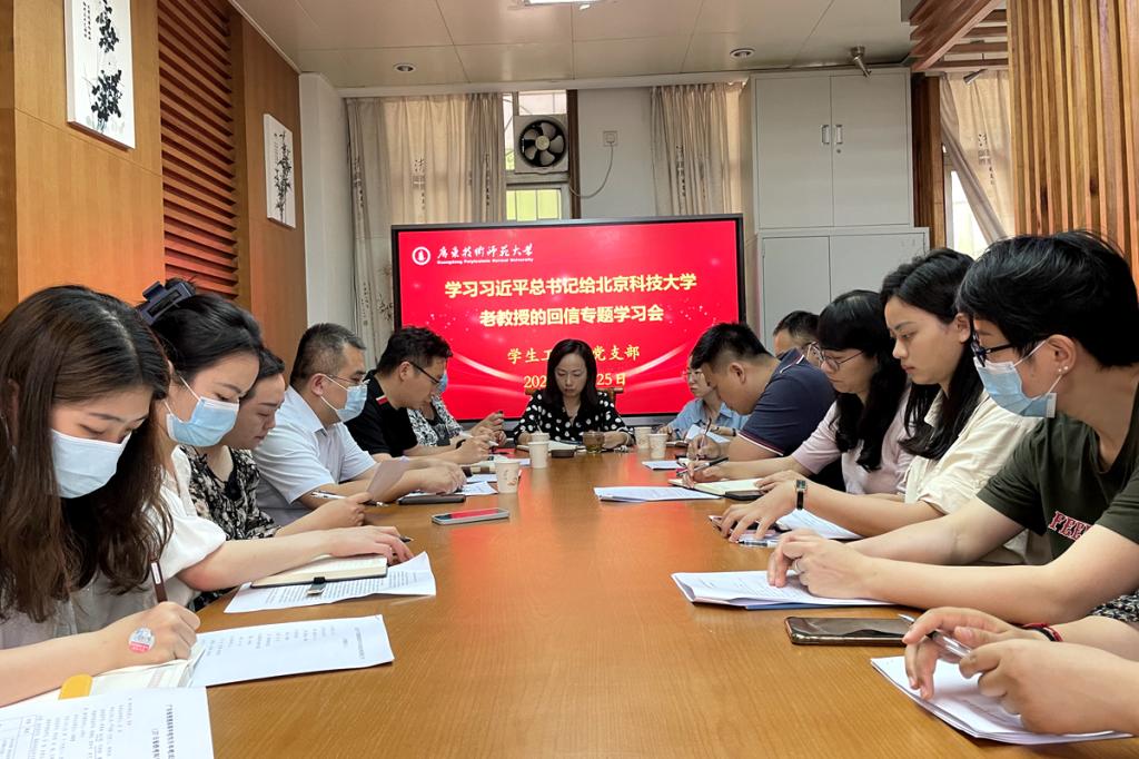 4月25日,学生工作部党支部开展专题学习会,学习贯彻习近平总书记给北京科技大学老教授的回信精神。