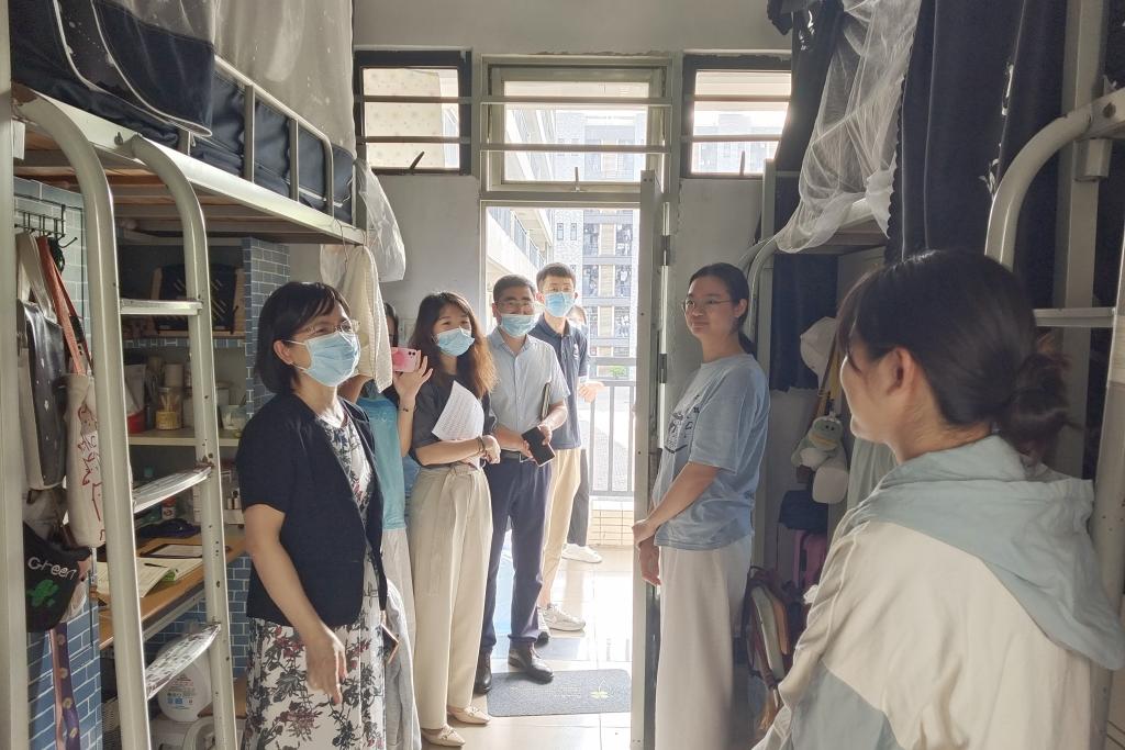 线下,学院领导分别带队走访学生宿舍,一方面检查学生在宿舍听课的状态,另一方面强调疫情管理规定,希望同学们共克时艰,自觉遵守疫情管理各项规定,积极配合做好学校组织的核酸检测工作。对待疫情防控保持平稳心态,不必过度焦虑。在走访过程中,学院领导将今年学院考研的可喜情况与同学们分享,鼓励同学们克服线上上课的种种不便,努力学习,向优秀学长看齐。