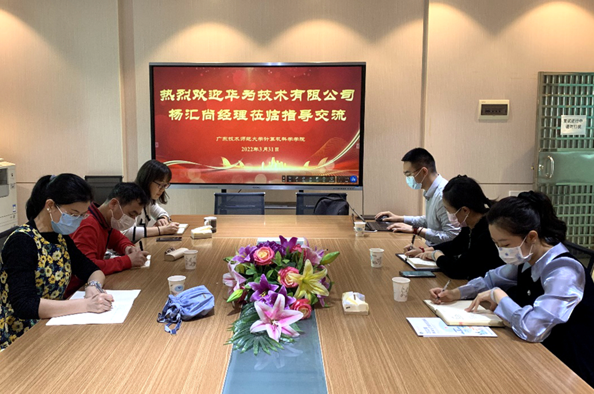 3月31日上午,华为技术有限公司(以下简称“华为”)政企广东教育行业总监杨汇尚与学院进行校企合作和产教融合工作交流座谈,本次座谈会采用线上线下相结合的方式进行。计算机科学学院副院长李春英、副书记杨燕佳、人工智能系主任刘伟莉博士、专业负责人郭建华教授以及教师代表参加了本次交流。