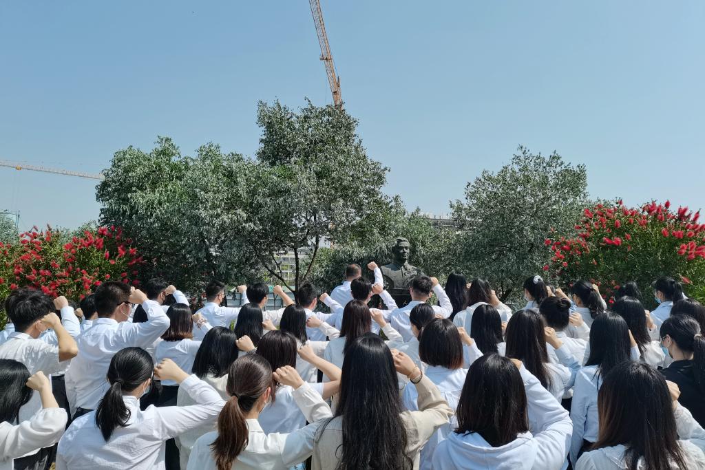 最后,许建鑫带领党员们在汪达之同志塑像前重温入党誓词。他表示,此次“清明追思先烈, 传承红色基因”主题党日活动,是为了持续深入开展党史学习教育,更好的传承红色基因,激发奋进力量。希望同学们能以此次主题党日活动为契机,坚定理想信念,认真学习贯彻习近平总书记重要讲话和2022年全国“两会”精神,深刻把握习近平总书记“五个必由之路”、“五个战略有利条件”的重要论述,深刻领会“两个确立”重要意义,增强“四个意识”,坚定“四个自信”,坚决做到“两个维护”,切实把思想和行动统一到总书记、党中央决策部署上来,毫不放松从严从实抓好疫情防控工作,积极参加疫情防控志愿服务,带头发挥先锋模范作用,从自己做起,从身边的小事做起,全面成长成才,以优异成绩向党的二十大献礼。