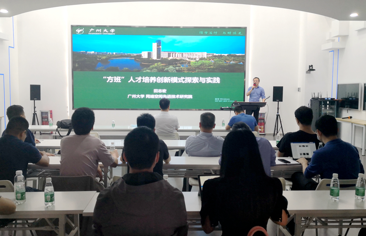 随后,田志宏教授从高校人才培养创新模式探讨与实践作了经验分享。他指出“教学过程游戏化”即在学习中以游戏的方式切入,能极大地提升学生学习的兴趣,帮助学生尽快掌握知识。它是中国工程院院士、广州大学网络空间先进技术研究院名誉院长方滨兴在网络安全人才培养方面的一个创新,使得广州大学培养一批批高素质的创新型网络安全人才。田志宏教授重点讲解了“教学过程游戏化”的培养模式是怎样运用到广州大学拔尖人才创新实验班“方滨兴班”(简称“方班”)的实际教学中。此外,他认为在研究生培养上采用“后选导师制”即研究生进入“方班”的第一学期不需马上选导师,而是充分参与到各个研究项目中,第二学期再结合自己的兴趣来选导师能学生发展为核心,充分挖掘学生潜能。