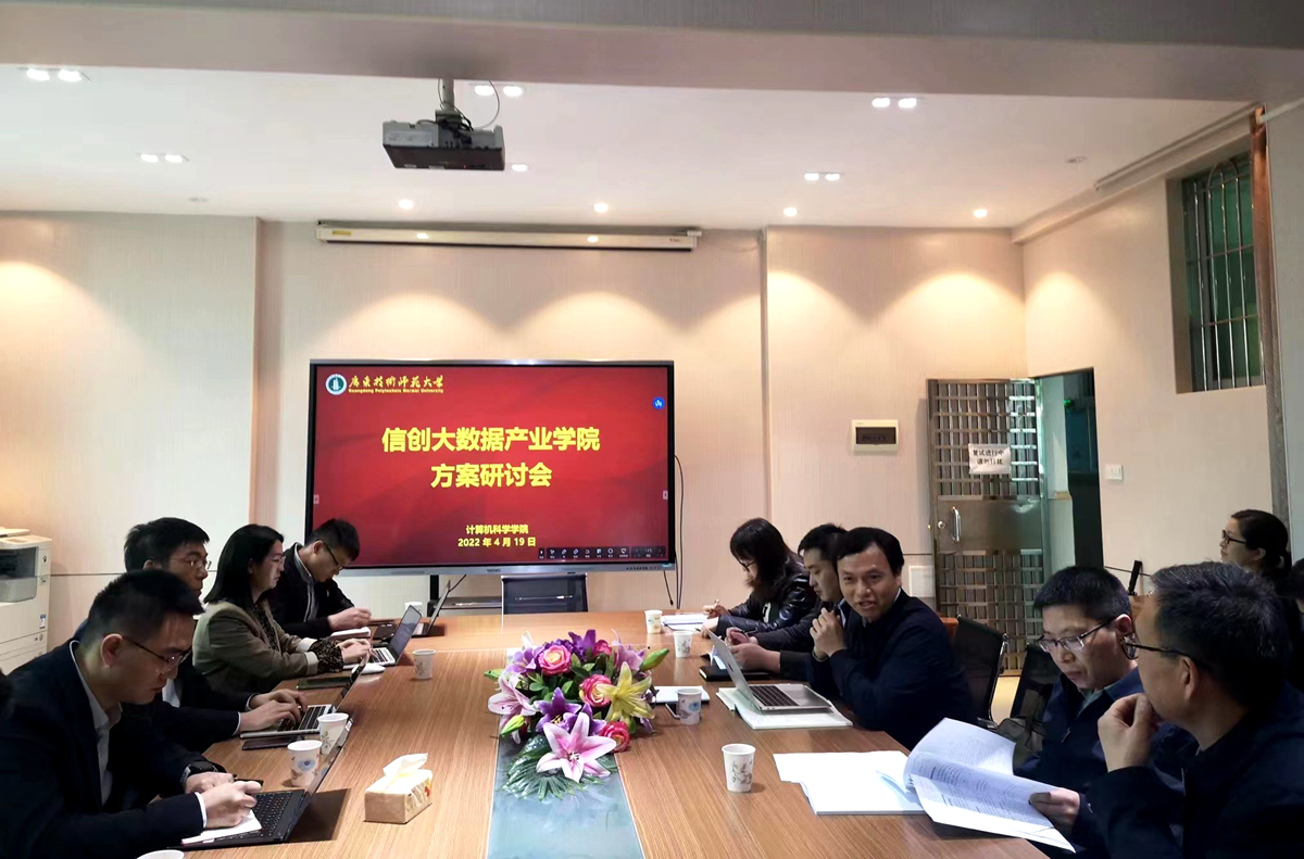 4月19日下午,计算机科学学院会同学校有关部门与华为技术有限公司、广东轩辕网络科技股份有限公司就共建“信创大数据产业学院”进行了专题研讨,华为政企广东教育行业总监杨汇尚、轩辕网络副总裁黄永健等,太阳集团发展规划处处长邓文新、教务处处长向凯、计算机科学学院院长赵慧民等参加了本次研讨会。会议由副院长李春英主持。