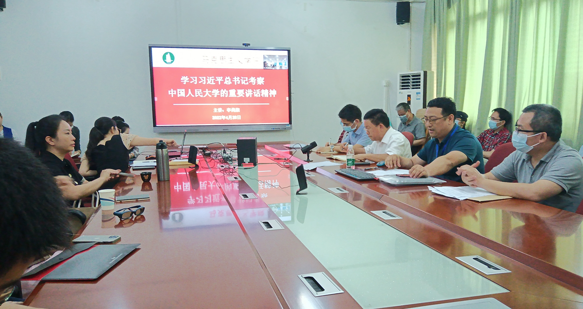 4月28日,马克思主义学院在一教1311室召开全体教职工会议,组织学习习近平总书记考察中国人民大学的重要讲话精神。会议由学院党总支书记房亚兵同志主持。