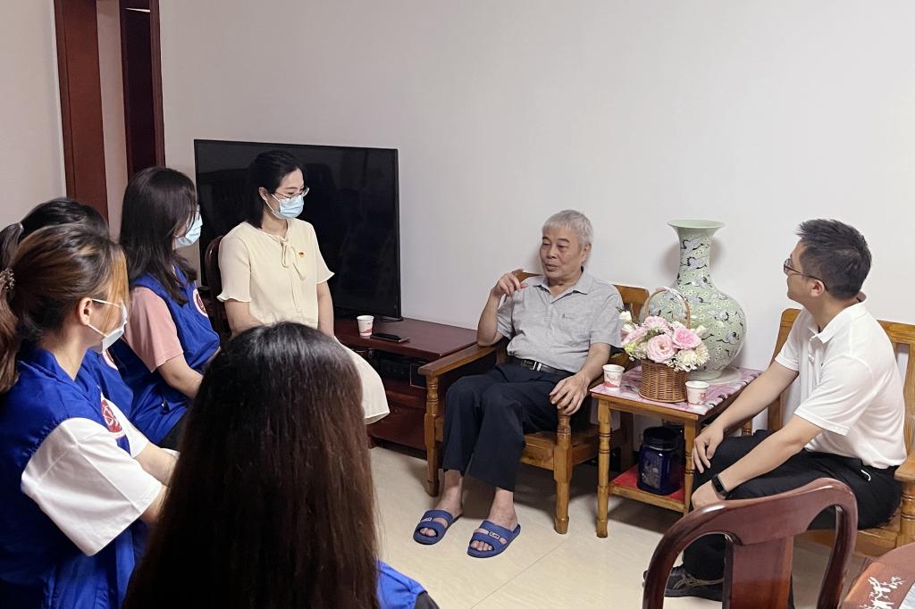 吴炳根是学院关工委联系指导老师,在他家中,李雪斌介绍了本次活动的主题和基本情况,感谢老同志对本次活动的大力支持,并代表学院为老同志送上祝福和慰问。吴炳根在与师生的交流中,领学了习近平总书记在中国人民大学视察时的重要讲话精神,分享了自己参与越战、参加工作的经历和人生体验。他从最伟大的小事、最平凡的事迹、最日常的奋斗和最具体的事例等四个主题入手,生动形象地向在场师生代表讲述了党的百年奋斗历程和伟大成就。