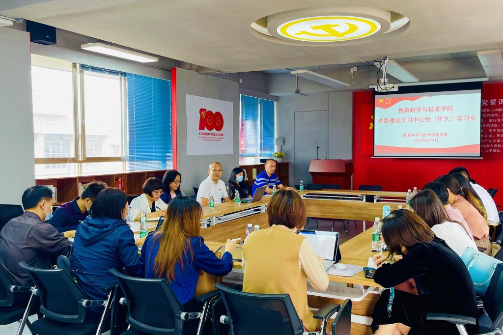 5月4日,教育科学与技术学院党委在东校区图书馆初心斋召开理论学习中心组学习扩大会。学院党委理论学习中心组成员,各党支部书记,各系、部、中心主任,专业负责人参加会议。会议由学院党委张旭日书记主持。