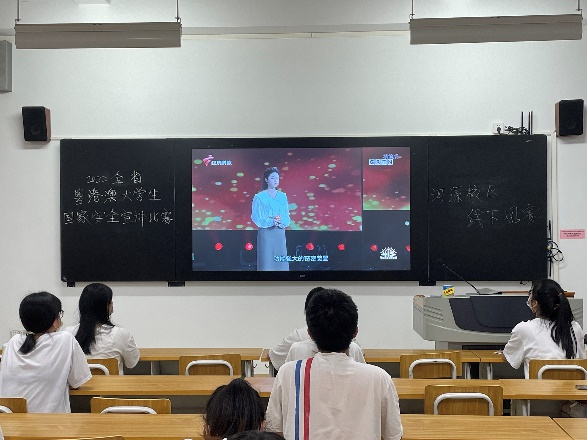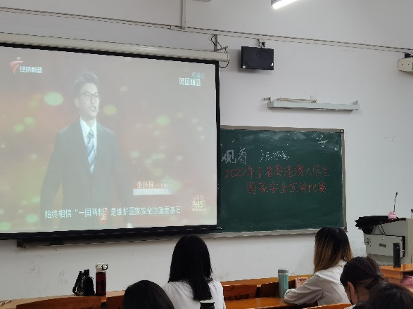 新时代坚持总体国家安全观对实现“两个一百年”奋斗目标、实现中华民族伟大复兴的中国梦,具有十分重要的意义。为迎接党的二十大胜利召开,树立总体国家安全观,5月4日,文学与传媒学院以“线上与线下相结合”的形式分别在白云校区三教410和河源校区唯实楼301组织师生观看“全省粤港澳大学生国家安全宣讲比赛”决赛。