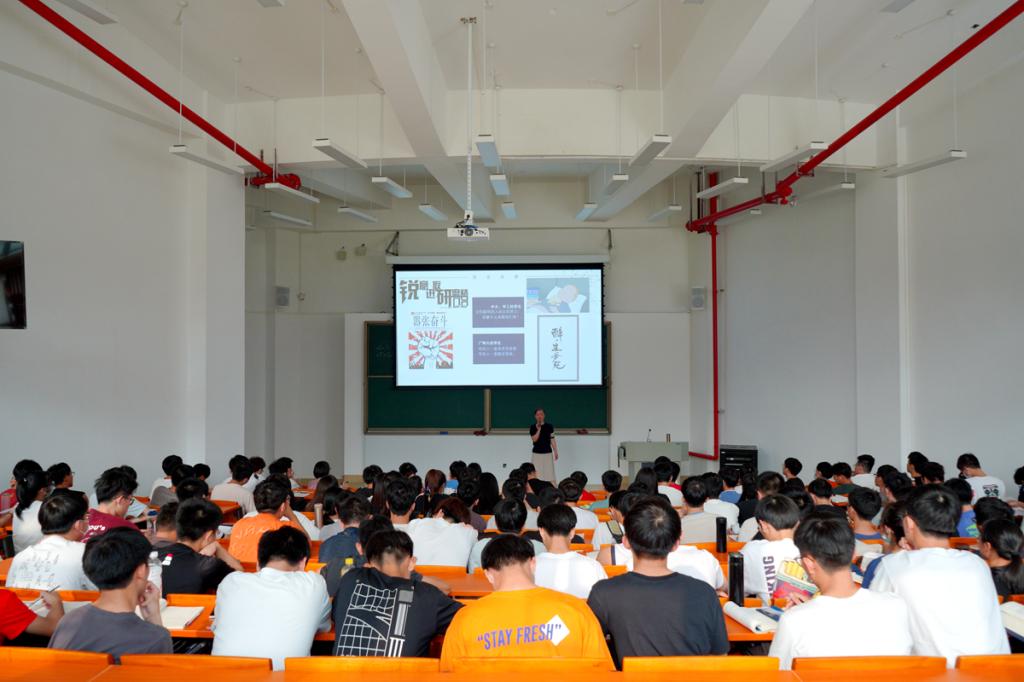 课上,杨舰首先带领大家深入学习领会习近平总书记在中国人民大学考察时的重要讲话精神,引导青年学生坚定理想信念,牢记党的教诲,立志民族复兴,不负韶华,不负时代,不负人民,在青春的赛道上奋力奔跑,争取跑出当代青年的最好成绩,用实际行动践行“强国有我”的铮铮誓言。杨舰教授接着从“大学有精神”“想象与真实”“你想走多远”“你要怎么过”四个部分逐步用各类她身边发生的真实案例启发学生大学四年要培养独立思考的能力,学会面对现实,热爱自己的学校和专业,遵从自己的内心尽快去做自己喜欢和想要获得的学问,以及如何学习学科专业,了解行业产业链全景等等。期间,杨舰强调广大青年学生应该传承党的光荣传统,继承红色基因,听党话,跟党走,牢记党的教诲,立志为民族复兴而读书。