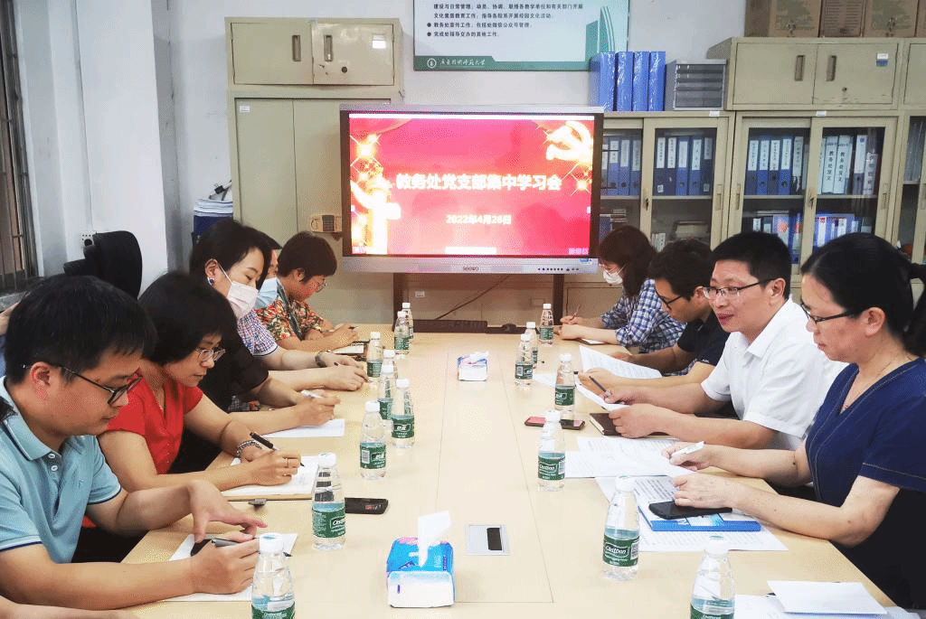 4月26日,教务处党支部全体党员在行政楼201开展支部集中学习。